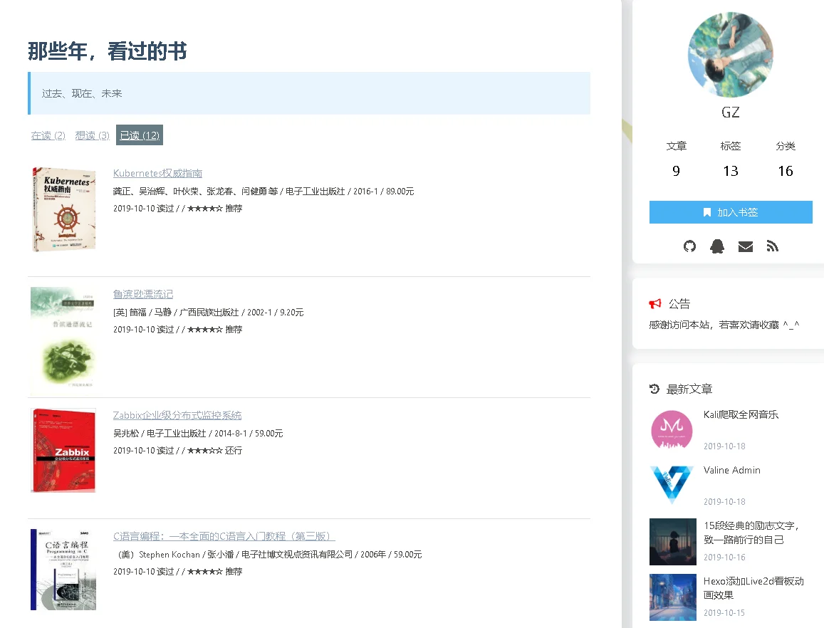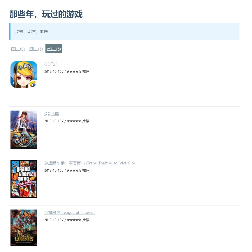 如果上面的配置和操作都没问题,就可以在生成站点之后打开 //yourblog/books 和 //yourblog/movies, //yourblog/games, 来查看结果.