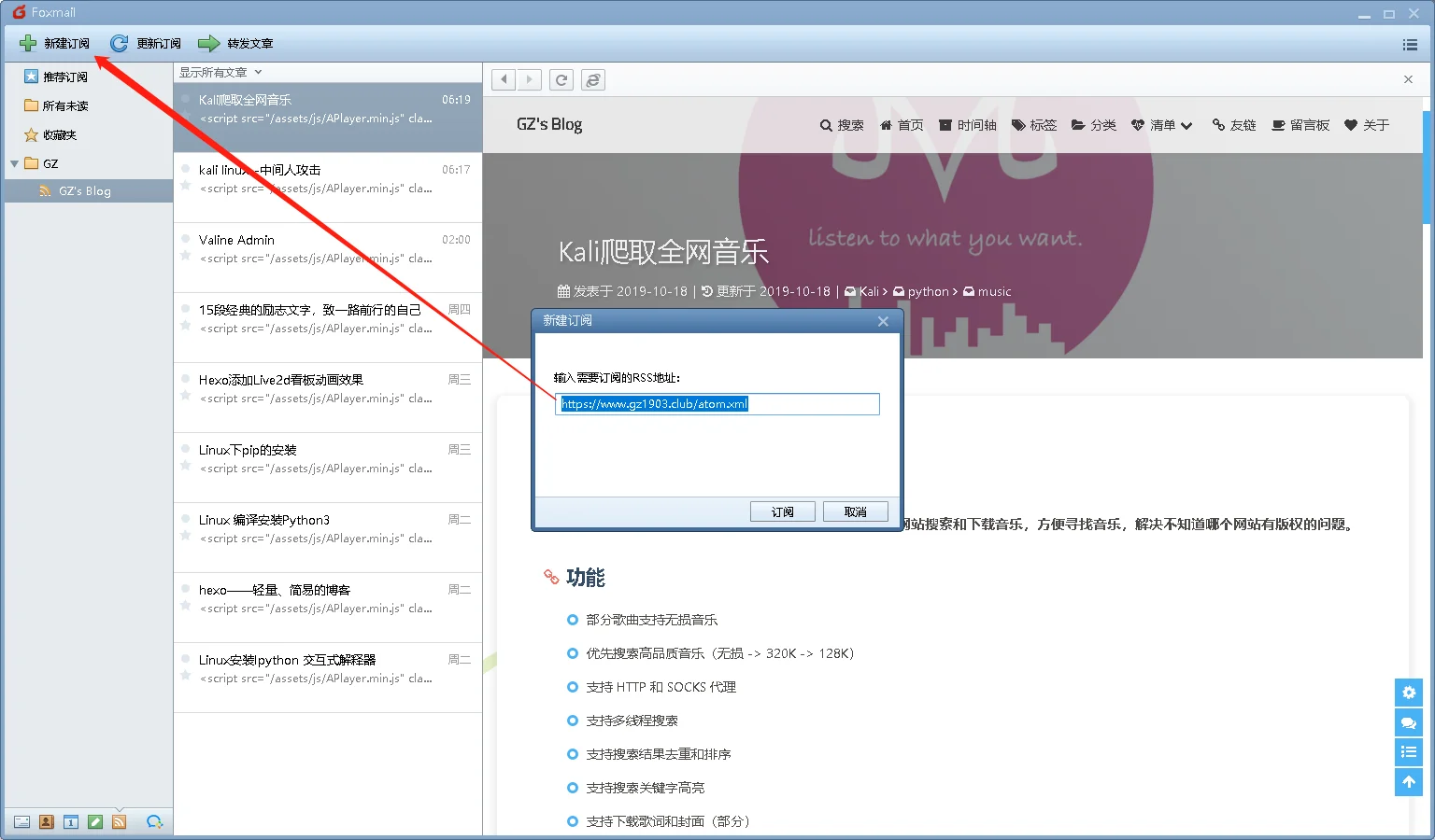 订阅地址为: https://www.gz1903.club/atom.xml (PS:订阅地址改为自己的博客)